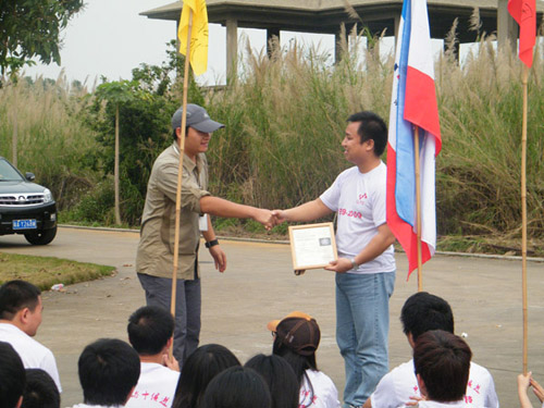 中午用膳簡(jiǎn)單的休息后,于13:40開(kāi)始了下午的活動(dòng),主要分為風(fēng)語(yǔ)戰(zhàn)士,營(yíng)救人質(zhì),虎口脫險(xiǎn)三個(gè)環(huán)節(jié)。這三個(gè)環(huán)節(jié)中主要是體現(xiàn)團(tuán)隊(duì)的配合和核心的指揮調(diào)度。引導(dǎo)到工作中就是我們?cè)跇?shù)立核心與目標(biāo)后,對(duì)于達(dá)成我們的目標(biāo)途徑每個(gè)人都要出謀劃策,對(duì)于確定的方法和計(jì)劃每個(gè)成員都必須掌握并且在過(guò)程中不折不扣去運(yùn)用,對(duì)于每一個(gè)成果大家都要給與回應(yīng)和確定,激勵(lì)大家往更高更遠(yuǎn)的目標(biāo)去邁進(jìn)。而且在目標(biāo)的完成過(guò)程中團(tuán)隊(duì)成員必須相互配合,聽(tīng)從調(diào)度與安排,把握好細(xì)節(jié)。確保目標(biāo)的順利完成。